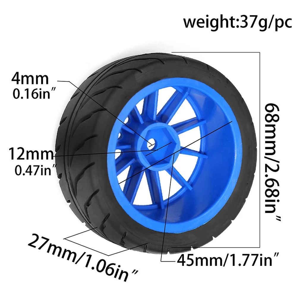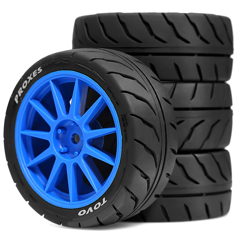 4PCS 68mm Rubber Tire with BLUE Wheel 12mm Hex : 1/10 Scale RC On-Road Car